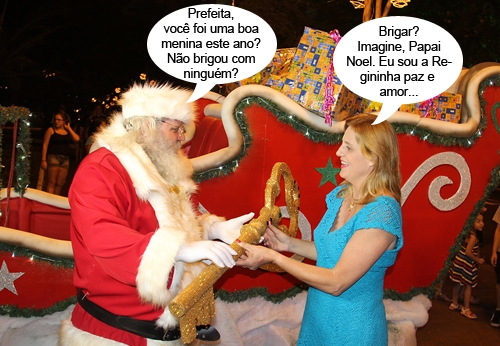 O clic é desta sexta-feira, quando o Papai Noel chegou de trenó à praça Getúlio Vargas. A prefeita Regina Dubay fez a tradicional entrega da chave da cidade ao "bom velhinho". Ho-ho-ho!...
