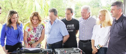 A prefeita Regina Dubay foi no fim de semana à Bokada Alimentos, no Parque Industrial, e entregou a escritura definitiva da área de 32 mil m2 doada pela prefeitura em 2011. O dono da empresa, Dorival Agulhon, recebeu o documento.