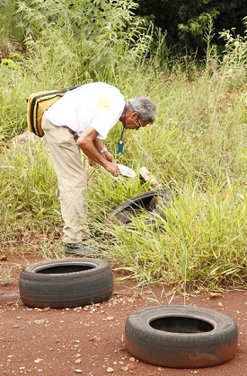 Agentes de combate a dengue acharam cerca de 20 pneus velhos num terreno na saída para Araruna. O caso será denunciado ao MP, já que existe um acordo sobre a destinação correta desse material. Pneu velho em terreno baldio, todo mundo sabe, é o paraíso do Aedes aegypti. É como se fosse a praia deles. A dengue é transmitida por mosquito, mas quase sempre com uma mãozinha de seres humanos "porquinhos"...