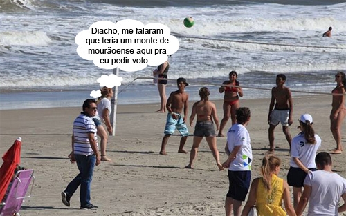 Olha aí o presidente do Instituto das Águas, Márcio Nunes, dando um giro pela praia. Pela roupa, não parece que está em férias. O clic foi postado por ele mesmo no Facebook, para falar do trabalho que educadores ambientais estão fazendo em todo o litoral do Estado. Hummmmmm...