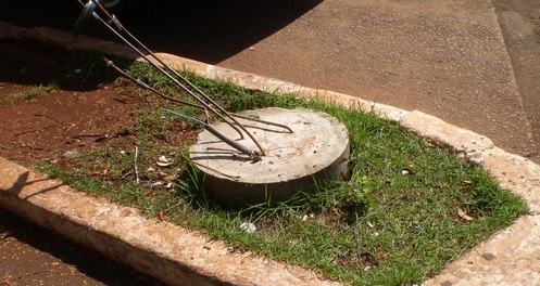 "Há mais de um ano foram postos postes republicanos em nossa Campo Mourão; faltaram postes, como este da av. Capitão Índio Bandeira, por exemplo (hoje sem ferros e sem fios)... E o que anda é pior: danificaram o asfalto, recapado há alguns anos... A Prefeitura vai ou não vai tomar providências?" Fraterno Maria Nunes