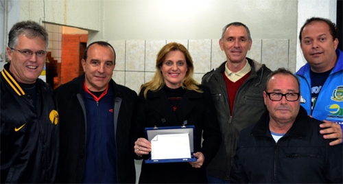 O secretário Getulinho Ferrari (Esportes) e o diretor teral da Fecam, Ricardo Echelmeier, acompanharam a entrega da placa.