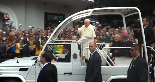 “A foto é da tarde desta segunda-feira, quando da chegada do papa Francisco no Rio de Janeiro. A imagem é de minha autoria, como voluntária na Jornada Mundial da Juventude. Foi uma grande emoção ver o papa de pertinho e ainda tirar uma foto dele. Viva Jesus!” Ilana Cecília Galicki de Campos