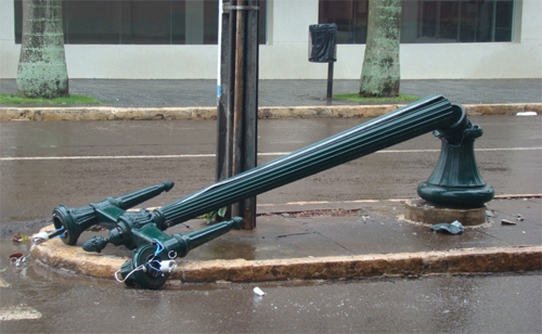O clic é deste domingo de manhã, na av. Manoel Mendes de Camargo, esquina com rua São José. O poste republicano está no chão, com as lâmpadas quebradas e sem seus globos. Como não há sinais de batida, tem cara de vandalismo. E lá se vai o dinheiro público...