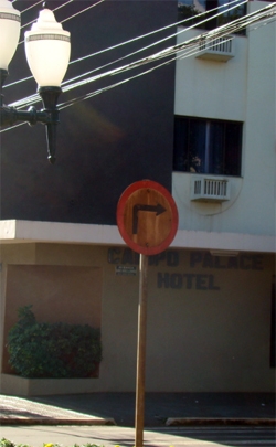 “Campo Mourão já é uma cidade carente de sinalização de trânsito e as poucas placas que existem ainda sofrem com a depredação e a falta de zelo. Nesta aí, na esquina da av. Manoel Mendes de Camargo com a rua Mato Grosso, uma boa dose de água com sabão faria muito bem”.