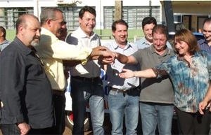 O senador Sérgio Souza esteve sexta-feira Quarto Centenário. Junto com o deputado Nereu Moura e com o prefeito Reinaldo Krachinski, foi participar da entrega de dois resfriadores para atender produtores de leite do município. Também entregou uma patrulha rural mecanizada. Os recursos foram assegurados pelo deputado federal Moacir Micheletto, que morreu em acidente. É, o mundo é dos vidos...