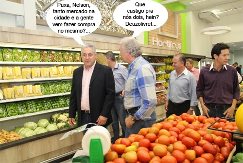 O clic é da semana passada, quando o deputado Douglas Fabrício e o ex-prefeito Nelson Tureck se encontram na inauguração do novo supermercado Bom Dia. Ao fundo também aparecem o vereador Toninho Machado e o gerente regional da Sanepar, Edson Lima. Agora, responda rápido: Douglas e Tureck estavam falando de política ou do preço do tomate?...