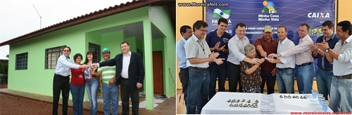 As prefeitas Célia Cabrera (Campina da Lagoa) e Elza Aparecida da Silva (Altamira do Paraná) participaram nesta quinta-feira da entrega de 32 casas a famílias que vem nas zonas rurais dos dois municípios.