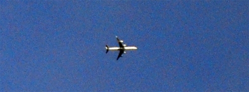 “Foto tirada em Araruna de um Airbus A340 da Iberia, indo de Madrid para Buenos Aires. Nossa região é rota de grandes aviões entre Europa e Buenos Aires. Estes aviões passam a mais de 9.000 metros de altitude e a 800 a 1.000 km/h. Dependendo do clima, até 10 aviões passam entre Cianorte e Campo Mourão por dia. Os maiores são o Airbus A340 e o Boing 747 com mais de 70 metros de comprimento”. Dionisio Striquer Soares (Araruna)