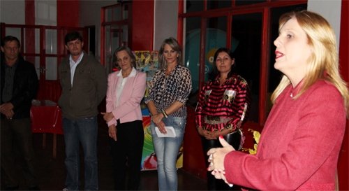 Olha aí a prefeita Regina Dubay, toda faceira, ministrando palestra em Corbélia. Ela falou sobre a criação e atuação da Secretaria da Mulher. O evento foi realizado pela Associação das Mulheres de Corbélia. Regina também conversou sobre projetos voltados as mulheres com o prefeito Ivanor Bernardes e com o presidente da Câmara, Juliano Schimitt. E a prefeita deu a dica da roupa de oncinha, né?...