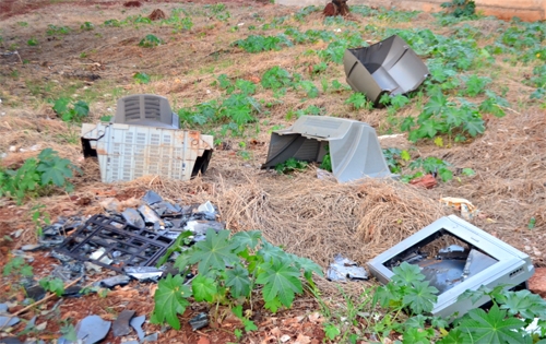 A foto é da rua Harrison José Borges, esquina com a av. Guilherme de Paula Xavier, onde o terreno baldio virou depósito de pedaços de uma televisão.