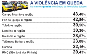 A região de Campo Mourão registrou de janeiro a março a maior redução de homicídios em comparação ao mesmo período do ano passado.