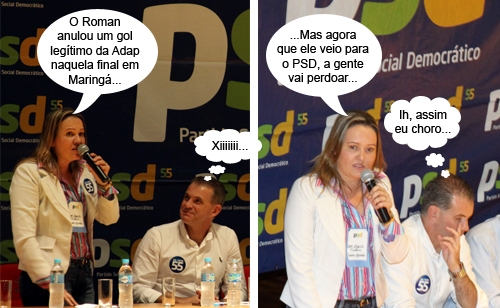 O secretário de Estado Evandro Rogério Roman (Esporte) é o mais novo filiado do PSD. A filiação aconteceu neste sábado, em Cascavel. A deputada Marla Tureck esteve por lá, com direito a discurso e tudo. Segundo ela, a adesão de Roman reforça ainda mais a sigla, que visa ter candidato próprio ao governo do Paraná no ano que vem. Hummm, mas filiando um secretário de Beto Richa?...