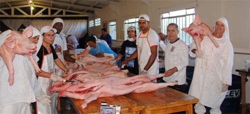 Ainda falta uma semana para a Festa do Leitão Maturado, mas os 250 porcos já foram abatidos.