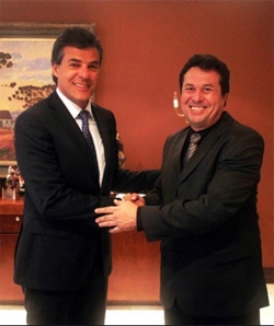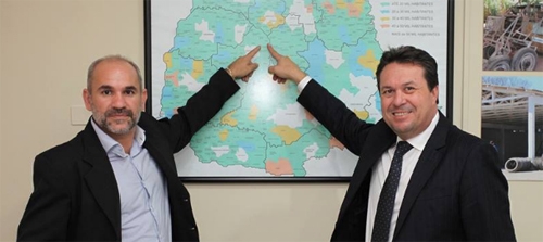 Fênix – O prefeito Edwaldo Chefinho (Fênix) esteve nesta quinta-feira em Curitiba com o presidente do Instituto das Águas, Márcio Nunes. Foi assinar o termo de cooperação para o fornecimento de tubos de concreto para construção de galerias. Aí, é claro, teve que fazer a foto mostrando sua cidade no mapa. Tá batizado!...