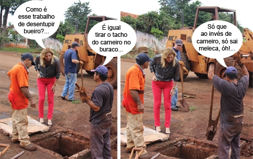 Os cliques são desta quinta-feira, no jardim Modelo, onde a prefeita Regina Dubay foi acompanhar o desentupimento de bueiros. Os trabalhos já são um adiantamento do terceiro módulo do programa “Prefeitura no bairro”, que estará no início de junho na região dos jardins Santa Cruz e Modelo. Quem dera fosse só carneiro que parasse no buraco em Campo Mourão...