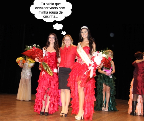 O vermelho prevaleceu nesta sexta-feira no concurso que escolheu a rainha da 23ª Festa Nacional do Carneiro no Buraco. A candidata eleita, Rebeca Ferreira da Silva, estava de vestido vermelho. A rainha do ano passado, Alessandra Souza, também. E não é que até a prefeita Regina Dubay deixou a estampa de oncinha de lado e prestigiou o evento de blusa vermelha? Ah, devia ser torcida pelo Bayern de Munique, só pode...