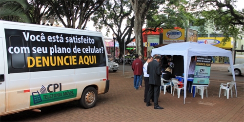 A equipe móvel da CPI da Telefonia Celular, da Assesmbleia Legislativa, “montou barraca” na praça São José nesta tarde de quarta-feira. O objetivo é receber reclamações e denúncias de usuários de Campo Mourão contra o mau funcionamento das operadoras. O atendimento na praça segue até às 19h. E cá pra nós: se todo mourãoense que tá tendo problema com o celular resolver aparecer, vai faltar praça...