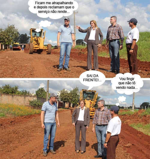 A prefeitura está fazendo melhorias nas ruas do Jardim Silvana. A prefeita Regina Dubay foi nesta quinta-feira dar uma olhada no serviço. Ela também conversou com moradores. A ação é paralela ao terceiro módulo do programa Prefeitura no Bairro, que está atendendo os jardins Santa Cruz, Modelo, Batel, Esperança, Mário Figueiredo e conjunto José Richa. Ah, pensa que é fácil, é?...