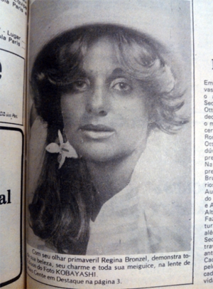 O recorte é de uma edição de 1987 do jornal “Gazeta do Centro-Oeste”. E olha só o que diz a legenda: “Com seu olhar primaveril, Regina Bronzel demonstra toda sua beleza, seu charme e toda sua meiguice”. É ela mesma, a prefeita Regina Dubay, no auge de seus 20 aninhos. Beeeeeem antes de aderir às roupas de oncinha...