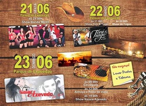 No sábado a animação é com a banda Tony & Thiago e também haverá show de fogos.