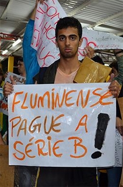 Você sabia que em 1998 o Fluminense foi rebaixado para a Série C do Campeonato Brasileiro? E que em 1999 o time foi campeão da Série C, mas pulou direto pra “primeira divisão” de 2000? Pois é. Quase 15 anos depois tem gente que ainda não se esqueceu disso. E foi ao protesto dos estudantes de Campo Mourão, nesta quinta-feira, exigindo que o Flusão “pague a Série B”. E ainda falam que brasileiro não tem memória...
