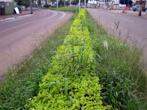 Prolongamento da av. Capitão Índio Bandeira, saída pra Maringá. A foto mostra o canteiro cheio de mato. Fraterno Maria Nunes