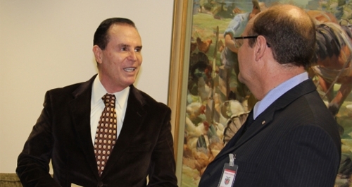 Ele foi recebeido pelo coordenador geral Carlos Augusto Garcia e pelo assessor de imprensa Alessandro Gonçalves.