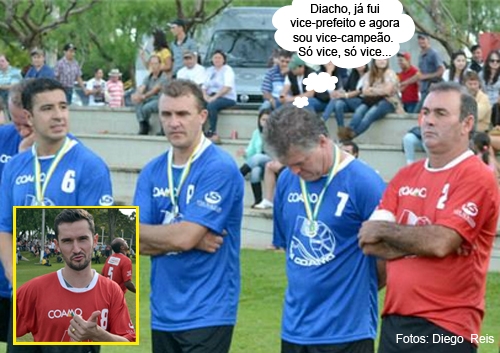 O clic é deste sábado, na cerimônia de premiação da etapa de Campo Mourão da Copa Coamo de Cooperados. O título ficou com o Sambati, que contou com o jogador Ângelo (ex-Adap, Paraná, Cruzeiro, Inter e Coritiba). Na decisão, vitória por 2 a 0 sobre o time do secretário Getulinho Ferrari (Esportes). Um dos gols foi de Angelo (destaque). No mais, Getulinho, que já foi vice-prefeito, agora é vice-campeão...
