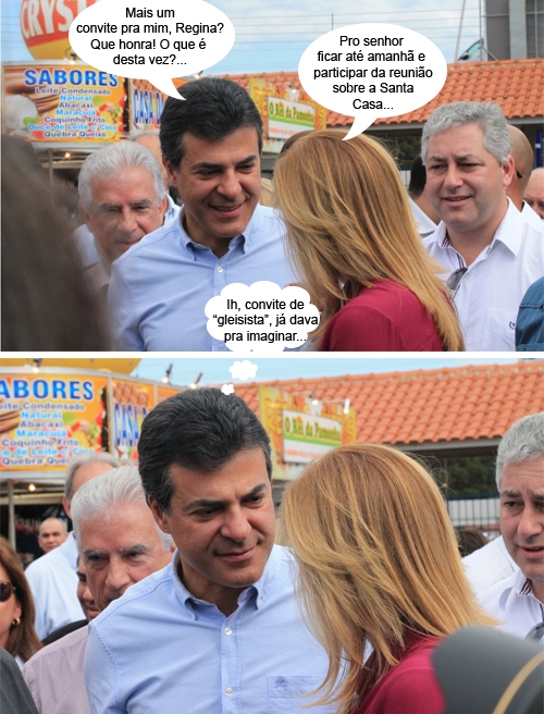 A participar da Festa do Carneiro no Buraco, o governador Beto Richa não deixou de dar uma passadinha pelos pavilhões de gado, com direito à famosa pose ao lado dos bichos. Ah, antes isso que ir pro frigorífico...