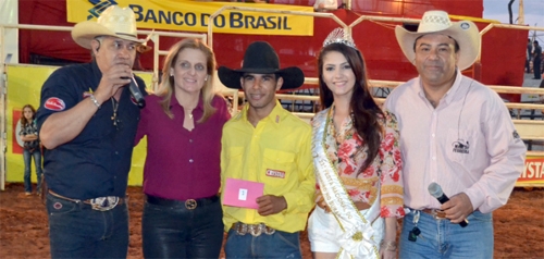 O mourãoense Johnny Jurandir foi o campeão da montaria em touros do rodeio na 23ª Festa Nacional do Carneiro no Buraco, finalizada na noite deste domingo. Ele tem 21 anos e está participando de rodeios há pouco mais de oito meses. Na prova dos três tambores (mulheres), as mourãoenses Nataly Rafagnin e Sandra Maggioni (Haras Valenthina) ficaram em segundo e a terceiro lugares, respectivamente. Ah, também, “jogando” em casa, com apoio da torcida...