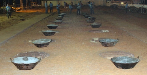 Depois de quatro horas de lenha queimando, é hora de descer os tachos para o buraco. Aí são mais seis horas de cozimento para que a iguaria fique pronta. O clic é de Irineu Ricardo, feito às 4h, madrugadona deste domingo. É a Festa Nacional do Carneiro no Buraco, que chega a sua 23ª edição com todos os 146 tachos vendidos, que servirão cerca de 10 mil pessoas. Boa apetite!...