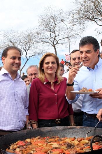 Na Festa do Carneiro no Buraco é assim, autoridade participa das solenidades festivas, mas tem que pegar no cabo da enxada. Neste domingo, na hora da retirada do tacho “número 1”, os primeiros a retirar a terra sober a tampa do buraco foram a prefeita Regina Dubay e o governador Beto Richa. Ô dureza...
