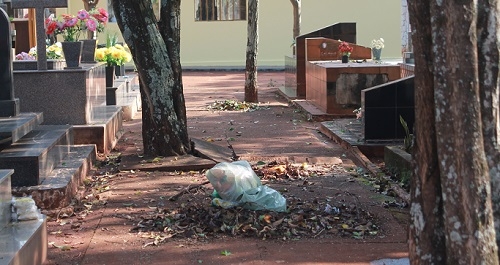 A uma semana do Dia de Finados, o Cemitério Municipal de Campo Mourão está sujo. Muuuuuuito sujo. É pouco provável que as equipes de limpeza consiguam deixar o local limpo como deve ser até o próximo sábado. O que, aliás, não será novidade. Faz tempo que o velho Sao Judas Tadeu anda meio abandonadão. Ah, mas deixa os morto aderirem à onda de protestos e começarem a puxar os pés das autoridades à noite, deixa!...