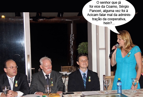 O clic é de sexta-feira na sessão solene da Câmara que entregou o título de cidadão honorário ao ex-vice-presidente da Coamo, Sérgio Panceri. A prefeita Regina Dubay discursa ao lado dos vereadores Luiz Alfredo e Pedrinho Nespolo e, entre eles, o homenageado. Na semana passada, o vice-prefeito Rodrigo Salvadori criticou a administração municipal durante reunião da Acicam.
