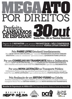 Com essa frase de abertura, entidades estudantis marcaram um novo protesto em defesa do passe livre do estudante.