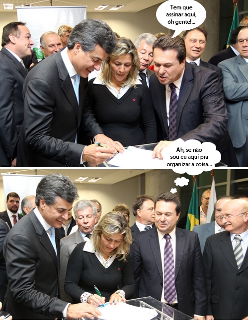 Altamira do Paraná. Olha a prefeita Elza Aguiar aí, assinando a papelada, com direito a uma orientaçãozinha do presidente do Instituto das Águas, Márcio Nunes. E viva a bolada a fundo perdido!...