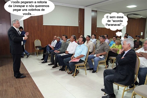 O clic é desta quinta-feira à noite, em Paranavaí, onde aconteceu etapa do programa “Pé na Estrada”, do PPS. E lá estavam os deputados Douglas Fabrício (estadual) e Rubens Bueno (federal), este último presidente estadual da sigla. Paranavaí é a terra da reitoria da Unespar. Ah, se você não pode com eles...