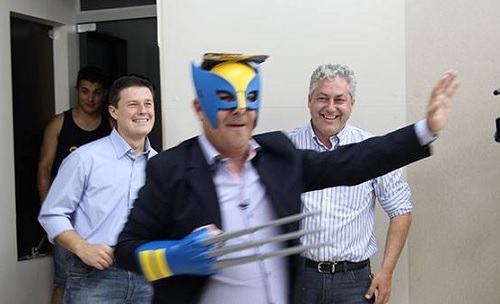 O clic é desta sexta-feira, nos bastidores do programa de Ricardo Borges, na TV Carajás. O presidente da Câmara, Pedrinho Nespolo, e o deputado Douglas Fabrício estiveram por lá e viram ao vivo a "encarnação" de Wolverine no apresentador. Que língua afiada, que nada! Olhe as garras!...