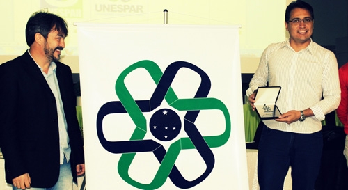 A criação do agente universitário Maike dos Santos venceu o concurso que escolheu o logotipo da Unespar. O anúncio aconteceu durante reunião do Conselho Universitário, em União da Vitória. Dos 2.042 votos registrados, a criação vencedora recebeu 1.042, o que equivale a 51% do total. O reitor Carlinhos Aleixo entregou o prêmio R$ 1.500 ao autor. O concurso recebeu 23 inscrições. E o ganhador não é de Paranavaí, tá?...