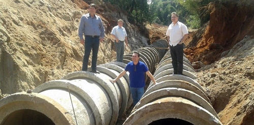 Calma. "Entubado", no caso, é fazer pose pra foto no meio de tubos de concreto que o Instituto das Águas tem distribuído, através de parcerias por esse Paranazão afora. No clic, o presidente do órgão, Márcio Nunes, está em Indianópolis junto com o deputado estadual Nelson Garcia. Os tubos são repassados via Programa de Ressocialização e Combate à Erosão Urbana (Proceu). Portanto, o Márcio não é Deus, mas também manda "Proceu"...