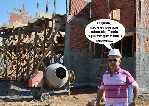 O clic é de Goioerê e mostra as obras da base de atendimento do Samu, O prefeito Beto Costa esteve por lá pra ver de perto a construção e saiu animado. Disse que as obras estão adiantadas. “Esse investimento para o setor da Saúde está sendo realizado com 100% de recurso próprio do município”, explicou. Só que, pelo visto, não sobrou dinheiro pra comprar um capacete maior por prefeito...