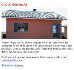 “Li um comentário das casas do Conjunto Residencial Milton de Paula, e gostaria de deixar meu comentário, pois também comprei uma casa no residencial e queria deixar claro que essas casas foram vendidas pela Construtora Piacentini e que faz parte do programa do Governo Minha Casa Minha Vida, porém nem todos que moram lá fizeram o financiamento.