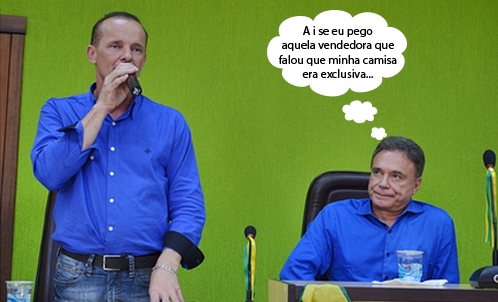 O clic é de Moreira Sales, onde o senador Alvaro Dias também passou durante a semana, quando fez um tour pela Comcam. A presença do senador levou várias lideranças para uma reunião na Câmara. Uma delas foi o prefeito Luiz Volpato. Os dois estavam com camisas idênticas. Lembrou aquela velha propaganda: “Bonita camisa, prefeito”. “A do senhor também é linda, senador”...
