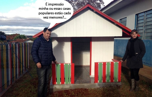 Calma, pessoal. Essa aí é só uma casinha para a meninada brincar na creche da comunidade do Guarani, em Mamborê. O centro de educação infantil passou por reformas que foram inauguradas durante a semana. Daí o motivo do prefeito Nei Calori estar por ali conferindo tudo, inclusive a casinha. Ah, “minha casinha, minha infância”...