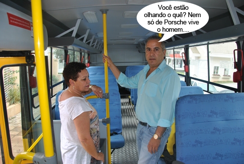 O que é isso, o prefeito Beto Costa (Goioerê) deixou o Porsche particular de lado e foi andar de ônibus? Não é bem isso. Ele entregou nesta segunda-feira um ônibus para a Secretaria de Educação e aí foi dar uma olhada por dentro do busão. O veículo será utilizado no transporte de estudantes que residem nas comunidades rurais de Goioerê. Tudo comprado pelo governo federal.