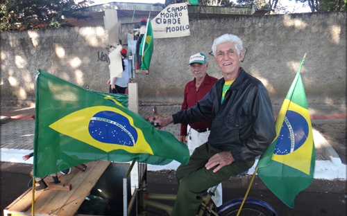 No feriadão do Dia da Independência, olha só o que o Ilivaldo Duarte flagrou. Seu Daniel Gonçalves, morador do Lar Paraná, mostrando o seu lado patriota em sua magrela incrementada. A bicicleta dele é cheia de apetrechos e no dia 7 de Setembro ganhou bandeiras nacionais.