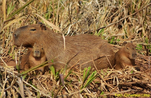 Hoje é domingo, pé de cachimbo, dia de ir passear no Parque do Lago e ver cenas como essa, flagrada por Cleverson Lima, com a capivara-mãe tomando sol junto com os filhotes.