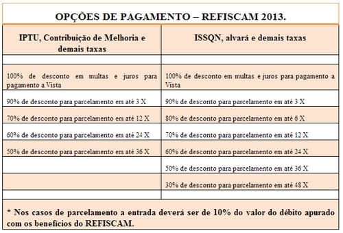 Se você tem impostos municipais sem pagar de 2012 pra trás, pode procurar a prefeitura pelos próximos 90 dias para acertar a situação e ainda ganhar descontos nos juros e multas. Se pagar à vista tem isenção total disso aí. A tabela acima mostra como funciona a coisa.