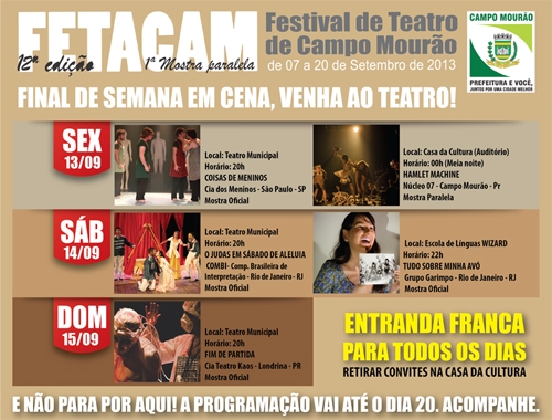 Será no Teatro Municipal, às 19h30.